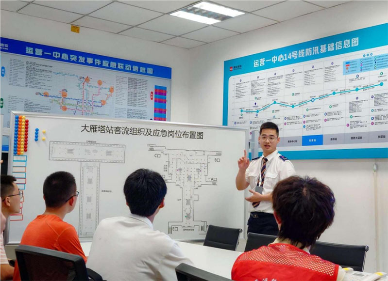 7月16日下午,團隊成員深入西安地鐵的特色站點大雁塔站學習大客流組織。在參觀學習的過程中,團隊一行觀看了大雁塔站精心制作的紀錄片,展示了大雁塔站成員的文化素養和綜合素質。