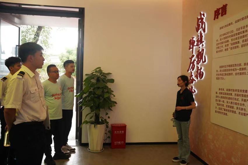5、7月9日上午,實踐團與漩口鎮政府舉行“雛鷹計劃”啟動儀式暨四川省大學生暑期“三下鄉”社會實踐“鄉村振興”實踐基地授牌儀式。下午,實踐團赴郫都區唐昌街道戰旗村進行經驗學習。