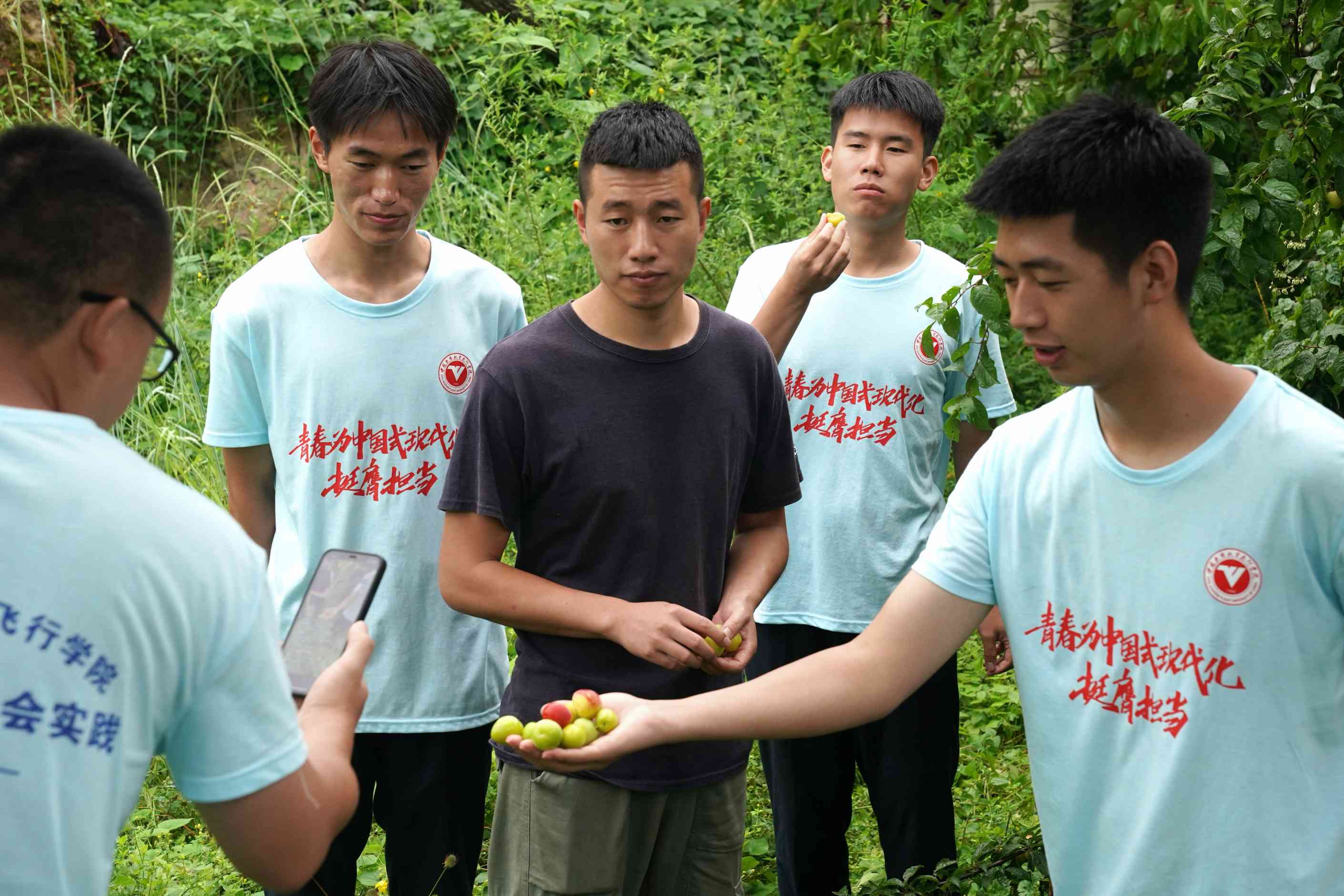 4、7月8日上午,實踐團走進古羌王遺都,來到蘿卜寨村村民果園開展直播帶貨。下午,實踐團來到當地村里種植的果園。