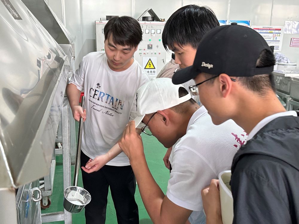 毛主席曾言:“中國是大農業國,發展工業必須和發展農業同時并舉。”隊員們對連云港工業現代化的標桿同樣充滿了興趣,走訪了科技賦能的現代化鄉村產業范例——江蘇海⼒源⽯英科技有限公司,親眼見證了石英石歷經粉碎、烘烤、篩選、研磨、磁選,氯化等繁復工序,化身為純度的石英粉和高品質的坩堝。在這里,科技創新日異月更,品質追求卻一以貫之,從起初老板親自前往東南亞尋找石英礦山進行合作開采,到如今公司全年營收6億元以上,繳納稅收3000萬元,產業規模不斷擴大;從粗糙的礦石逐漸轉變為精致的產品,先進提純技術大顯神通,工人們的精益求精和公司近十年來初心不改的銳意進取也值得稱道。傳統工業與現代工業的結合,專業化和精準化的并重,充分體現了科技創新在企業發展的核心作用。
