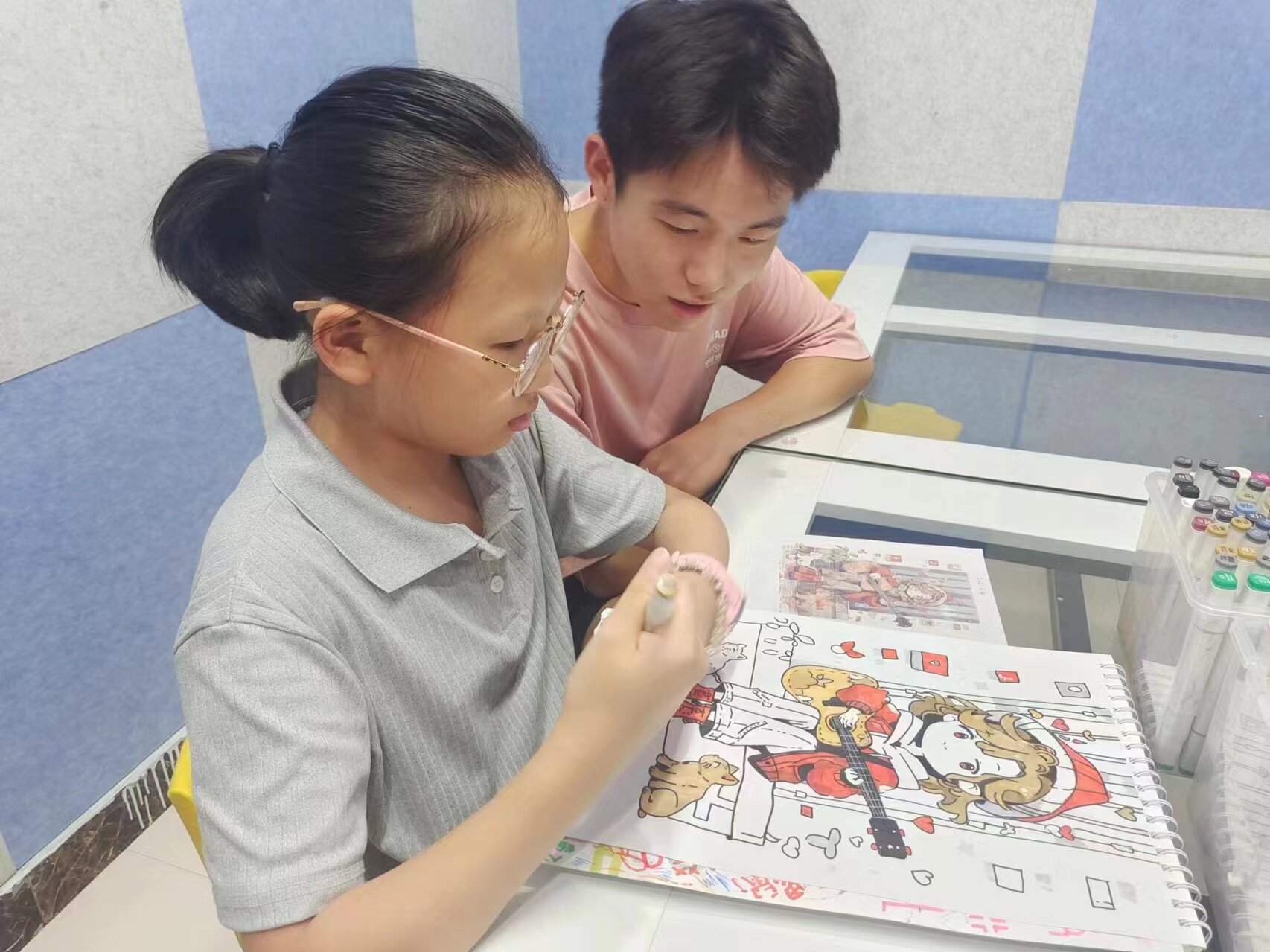為了給孩子們帶來快樂,實(shí)踐隊(duì)員還購買畫筆、畫紙等工具,教給孩子們?nèi)绾谓o人物上色。我們發(fā)現(xiàn)這些孩子非常的聰明,對于這些事物非常的感興趣。