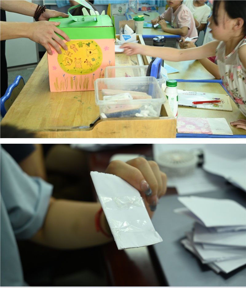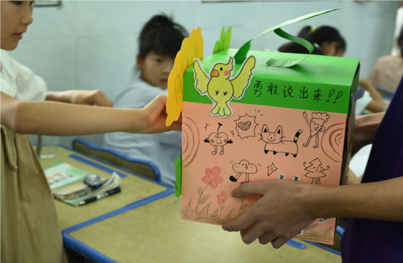 活動伊始,由小風鈴支教隊的美術老師和手工老師將抽獎箱改造為樹洞,并由各個班班主任準備好“煩惱樹洞”相關材料。活動過程中,各班班主任向學生們講解傾訴煩惱的意義。傾訴煩惱有利于個人情感的釋放,了解自己的需求和價值觀,并且建立和老師的信任關系。