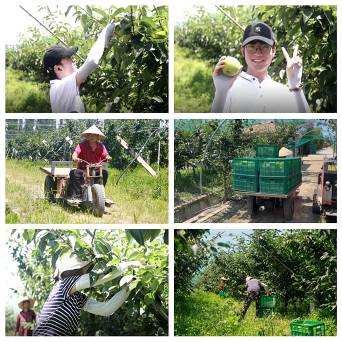 梨香滿園映青春,果蔬田里話豐年高高的枝頭結(jié)滿果,又是豐收好時(shí)節(jié)!尋“常”史陳鄉(xiāng)村調(diào)研實(shí)踐團(tuán)前去探訪時(shí)正值梨子采摘季,也是過(guò)了一把采摘癮。 挑一棵青蔥蒼翠的梨子樹(shù),選一個(gè)長(zhǎng)相超棒的梨子果,一拉、一拽、一剪,一顆果實(shí)就被“請(qǐng)”下枝頭,落進(jìn)采摘籃,等著車(chē)子統(tǒng)一運(yùn)輸,然后裝飾包裝、最后等著售出。 看著一顆顆個(gè)頭飽滿的果子牢掛在枝頭,散發(fā)著陣陣果香,果農(nóng)臉上都洋溢著燦爛的笑容,果園豐收了,今年的收入也不會(huì)少?lài)D。 據(jù)了解,史陳家村利用現(xiàn)代化農(nóng)業(yè),與江蘇省常州市潤(rùn)土瓜蔬專(zhuān)業(yè)合作社等展開(kāi)合作,積極響應(yīng)“萬(wàn)企聯(lián)萬(wàn)村,共走振興路”的方針政策,不斷培育壯大龍頭企業(yè),打造精品瓜果采摘產(chǎn)業(yè)園、有機(jī)蔬菜等特色項(xiàng)目,帶動(dòng)周邊千余農(nóng)戶(hù)致富。