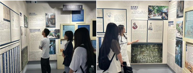 圖2、圖3:廈門大學嘉庚學院“鯉好泉州,活態人間”實踐隊隊員觀看市舶司遺址歷史