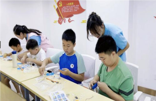 實踐團指導小朋友動手制作水力發電模型(李承潤攝)