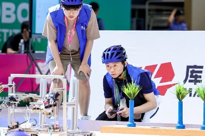 圖為光電Robot團(tuán)隊在比賽場上緊張操作。ROBOCON主辦方 供圖