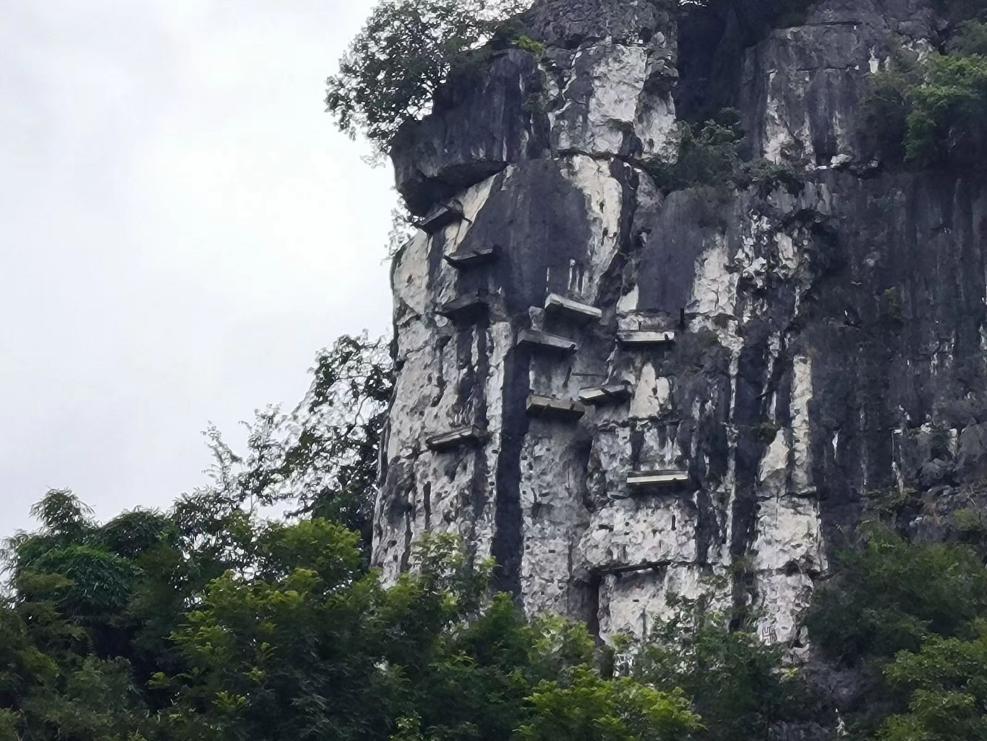 僰人是一支古老的民族,主要分布在中國西南的四川、云南、貴州三省交界處,公元1115年,僰人聚眾造反,揭竿起義,但被宋軍用“火猴戰”打敗,僰王被宋軍擒獲后招安。僰人兵敗僰王山后,在400多年的時間里偃旗息鼓,直到明朝萬歷元年(公元1573年),再次在興文、珙縣兩地造反,明朝大舉圍剿,最終在興文縣九絲城將僰人徹底剿滅,僰人從此銷聲匿跡。僰人留給后世的主要有它的祭祀文化與著名的僰人懸棺。通過講解人的解說,僰人在被滅亡后史書留下的記載十分有限,現今僰人懸棺的葬式主要有三種:木樁式(巖壁上鑿孔打木樁,木樁上放置棺木,可上下重疊)、巖墩式(利用峭壁上自然平整的巖石塊放置棺木)、洞穴式(利用峭壁的自然巖洞放置棺木),而僰人懸棺是如何安置在陡峭高危的懸崖上的至今也沒有確切的證明,有關僰人懸棺放置的方法推測主要有垂索法、升置法、棧道法、壘土法等。