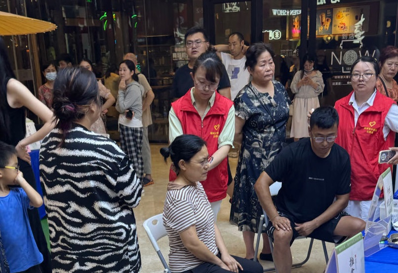 (通訊員 周瀅瀅)盛夏酷暑,驕陽似火,但揚州新城吾悅廣場卻洋溢著濃濃的暖意。這是因為一場由揚州中醫院組織的“三伏貼免費發放活動”正在火熱進行,而一群青春洋溢的志愿者們正用自己的熱心與熱情為這場愛心接力添磚加瓦。南京財經大學應用數學學院“弘揚志愿精神”團隊一行九人于近日赴江蘇省揚州市開展了以“弘揚志愿精神,書寫人生華章”為主題的暑期實踐活動,作為志愿者參與到揚州市中醫院的活動之中。