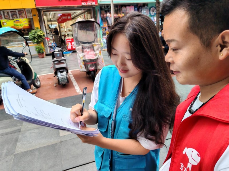 圖為志愿者向路過行人進行越西文旅產業問卷調查。通訊員 曲木伍加莫 供圖