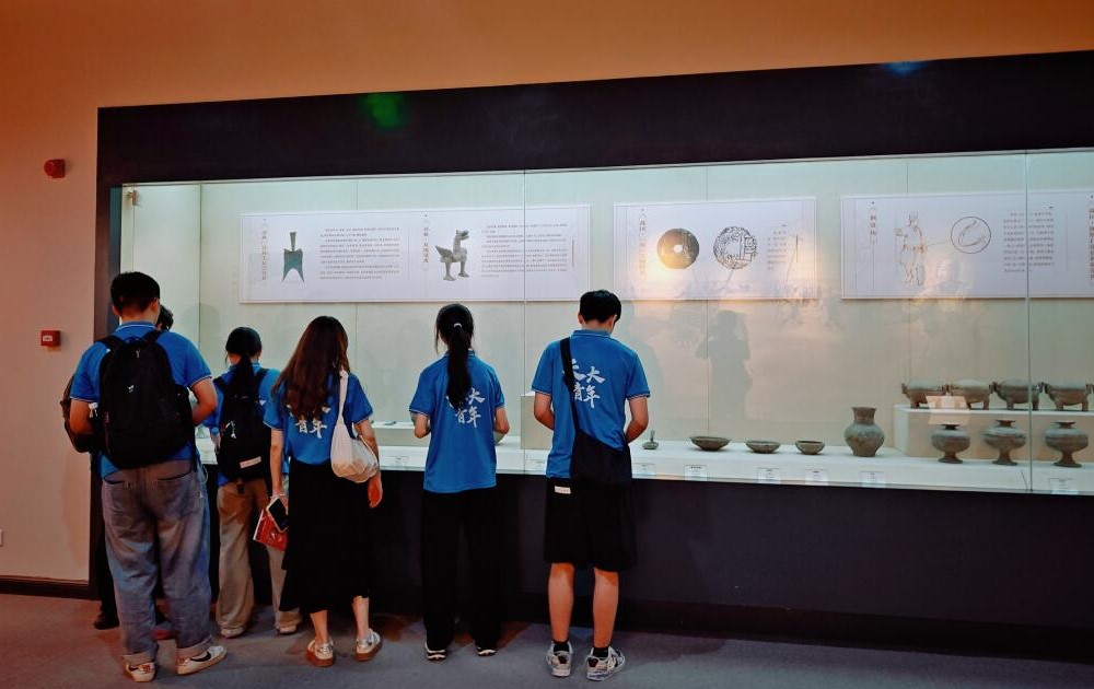 博物館承載著豐富的文化內涵,成為城市的象征與名片。7月15日,實踐隊前往濮陽市博物館,館內館藏豐富多樣,歷史文化陳列廳主要展示自仰韶文化時期以來濮陽出土的各類文物,“三李”先進事跡展彰顯李文祥、李連成、李全芳的模范作用與感召力量,此外還設置有書畫藝術館、攝影展覽館、民俗展等。漫步其中,隊員們探尋古城的發展脈絡,感受濮陽悠遠厚重的歷史文化,當看到中國考古發現的年代最早、形狀最完備的龍形圖案——被譽為“中華第一龍”的蚌塑龍時,民族自豪感油然而生。濮陽的變遷與發展離不開眾多先驅者的拼搏奮斗,其精神也成為濮陽人民長期秉持的價值規范和行為導向。