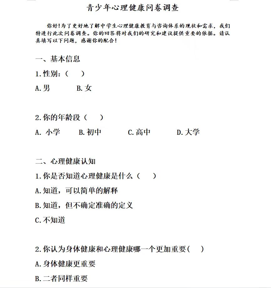 線下走訪調(diào)研深入交流促了解。實(shí)踐團(tuán)隊(duì)以生活周邊地區(qū)為實(shí)踐地點(diǎn),展開了為期2天的線下實(shí)踐調(diào)研活動(dòng)。實(shí)踐團(tuán)隊(duì)通過與社區(qū)等進(jìn)行合作,面向不同年齡段的青少年開展問卷調(diào)查,了解青少年存在的心理健康現(xiàn)狀,同時(shí)通過深入的交流,了解青少年的成長環(huán)境,性格特點(diǎn)以及心理以后,并為其發(fā)放心理健康手冊(cè)。