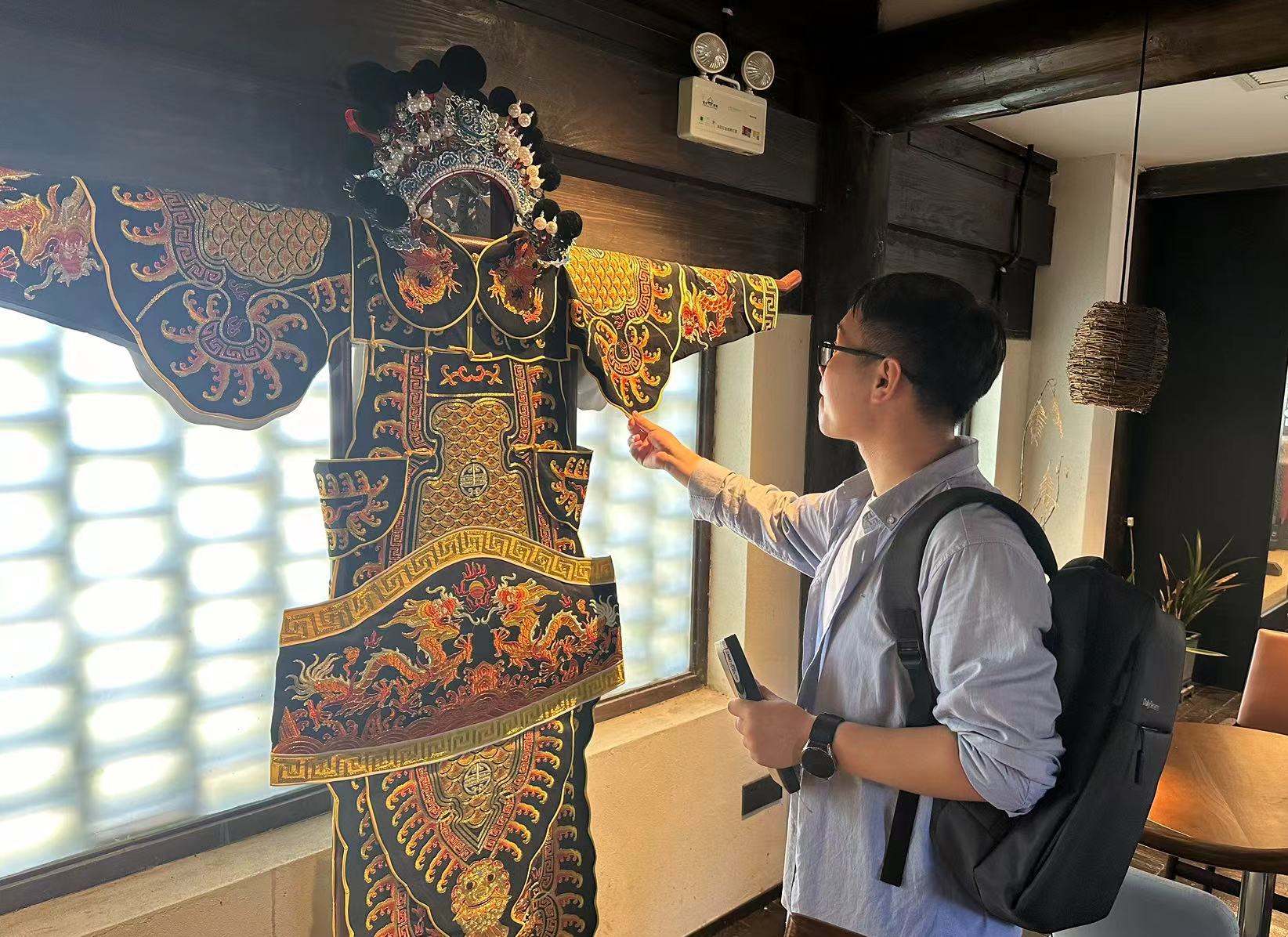 實踐團裔士燁同學以榮獲文華獎的淮劇作品《小鎮》為切入點,聚焦探索鹽城淮劇的非遺文化發展新路徑。他通過查閱資料、參觀博物館等方式細致學習了淮劇的基本知識。通過實地采訪江蘇省淮劇團辦公室主任,進一步了解了淮劇的發展現狀,發現淮劇在各方的支持下已然走上了一條成果滿滿的跨地域發展新路。此外,裔士燁同學還走進江蘇省建湖縣沙莊鎮,實地探訪發源地淮劇的傳承情況,與民間藝人交流,親身感受當地濃厚的淮劇文化氛圍,獲取了一手的寶貴資料。