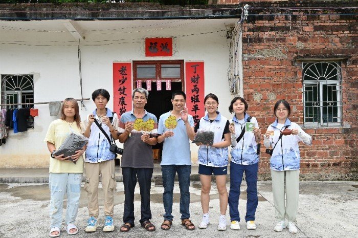 圖為泥水共治實踐團成員和手藝人共賞柚子茶。顏心遠 供圖