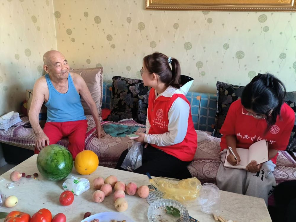 山西師范大學化學與材料科學學院紅色記憶尋訪團第八期紅色記憶尋訪實踐隊隊員岳佳琪、程俐璇、栗亞萱、劉嘉茵、王雅欣、武嘉欣、余佳欣七人為進一步了解紅色革命,深刻體會紅色精神于2024年8月5日前往祁縣東觀鎮陽光小區采訪退伍老兵程清義爺爺。