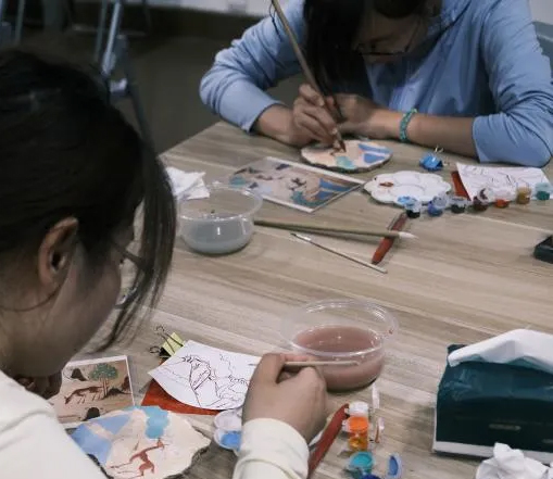 圖為吳未西東團隊體驗彩塑藝術。崔鈺涵 供圖