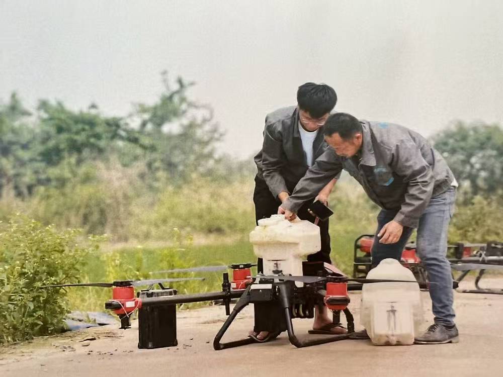 圖為工作人員操作無人灑水機。徐康婷 攝
