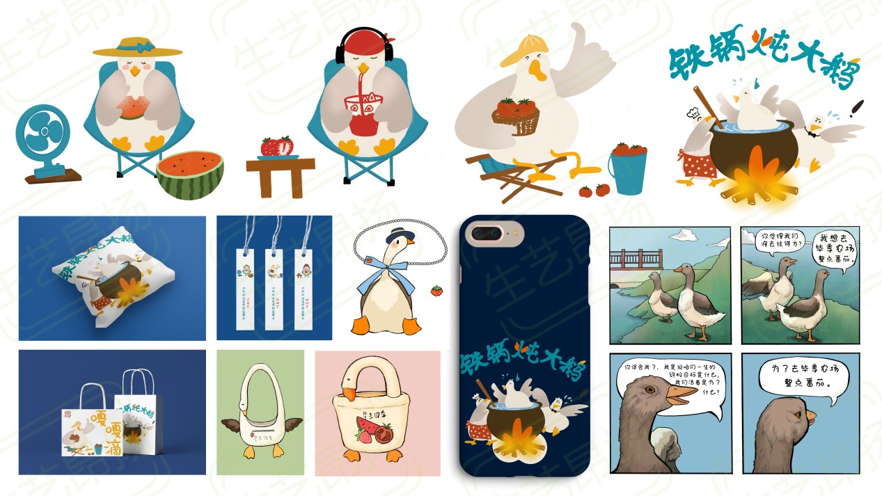 實踐團匠心打造了一系列既承載文化記憶又富有創意的文創產品。特別為老畢農場設計了“畢生四季”主題LOGO,這一設計巧妙融合了農場的四季更迭與豐收的喜悅,成為農場品牌的新名片。同時,推出了“四季農場”、“大鵝的農場生活”及“兒童研學”三大系列文創衍生品,涵蓋農產品包裝、手工藝品、紀念品等多個類別,不僅提升了農產品的附加值,更讓游客在帶走產品的同時,也帶走了一份對沙頭鎮獨特文化的深刻印象。