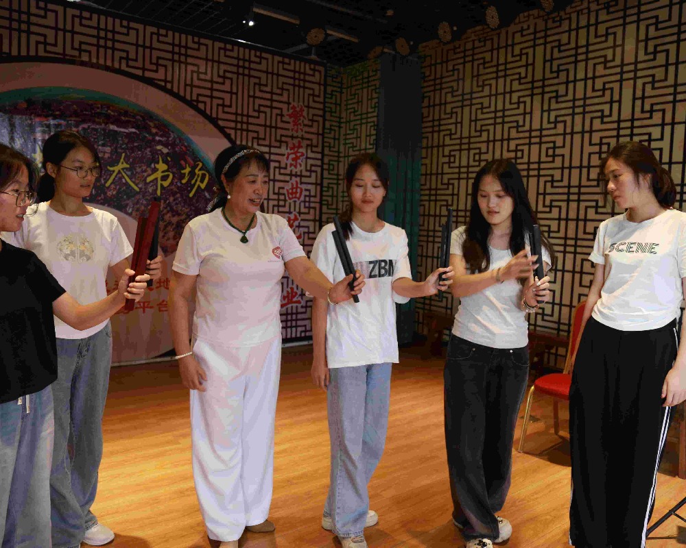團隊成員首先來到了位于馬街書會的中華曲藝展覽館,這里是胡秀然老師教授學生河南墜子的地方。胡秀然老師是西路河南墜子市級代表性傳承人,中國曲藝家協會會員。她從藝39年,精通西路河南墜子的演唱技藝。隊員們希望通過走進胡秀然老師的一天,深入非遺,感受其精神世界。