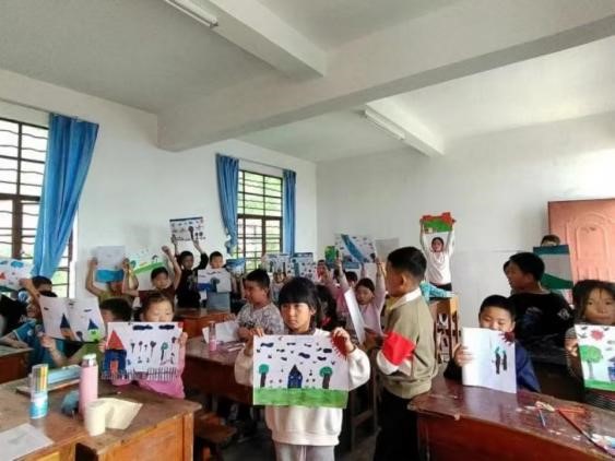 胸中丘壑筆端收,誰把丹青染素秋。為了豐富學生的課余生活,培養他們的藝術興趣和創造力,我們開展了繪畫教學活動,由專業的志愿者指導,教學生使用顏料調出更加絢麗的顏色,教學生使用排筆,將他們腦海里的畫面呈現在畫紙上。