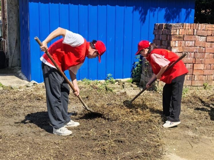8月19日,在村委干部的帶領下,志愿者們來到一戶空巢老人家中,了解到該老人房子附近土地雜草叢生,老人又無力除草,于是志愿者們接過這一任務。