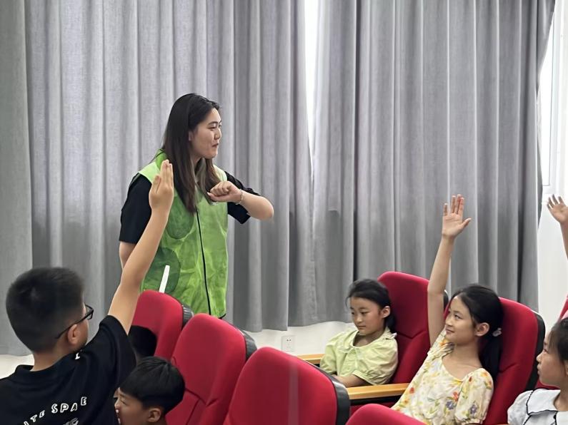 圖為小朋友積極回答志愿者的問題 多彩大學生網(wǎng)通訊員 周嘉懿 攝