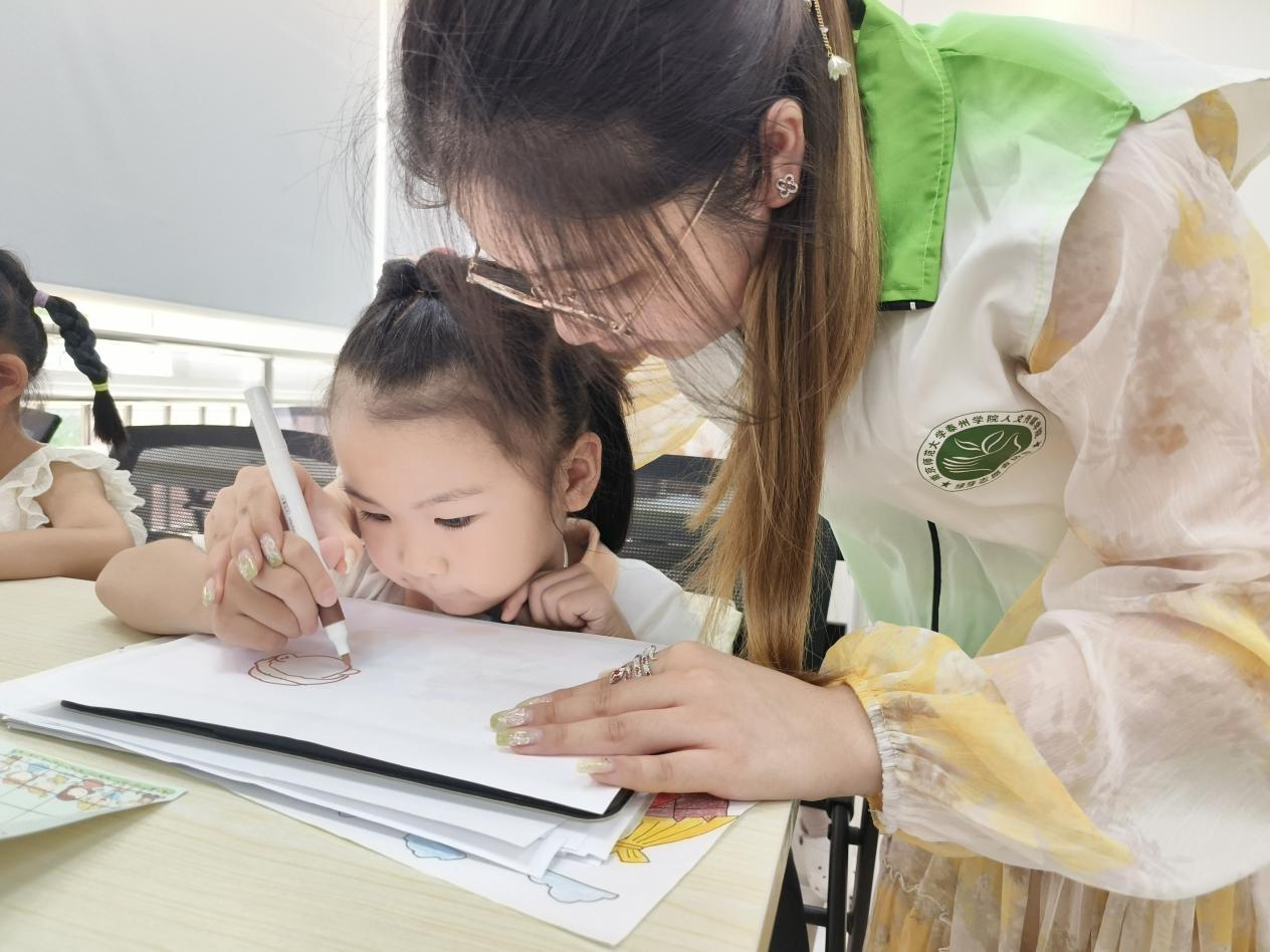 圖為志愿者在教小朋友畫畫 多彩大學(xué)生網(wǎng)通訊員 查嘉麗 攝