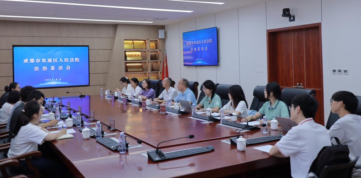 三、成都市雙流區(qū)人民法院實踐隊員赴往成都市雙流區(qū)人民法院深入實踐,開展了包括庭審觀摩、“一站式多元解紛中心”參觀、“法治茶話會”等多種多樣的調(diào)研活動。雙流區(qū)人民法院黨組成員、政治部主任張林力及多位庭長、法官出席了“法治茶話會”,與武漢大學(xué)和四川大學(xué)的法科學(xué)子聚焦“法律援助與司法救助”主題,就救助資金來源、救助標(biāo)準(zhǔn)、司法救助與法律援助的銜接等問題進(jìn)行了分享與交流。實踐隊成員們積極提問,大膽交流,深刻認(rèn)識到目前實務(wù)現(xiàn)狀,深入思考如何運用法治力量援助弱勢群體,收獲頗豐。