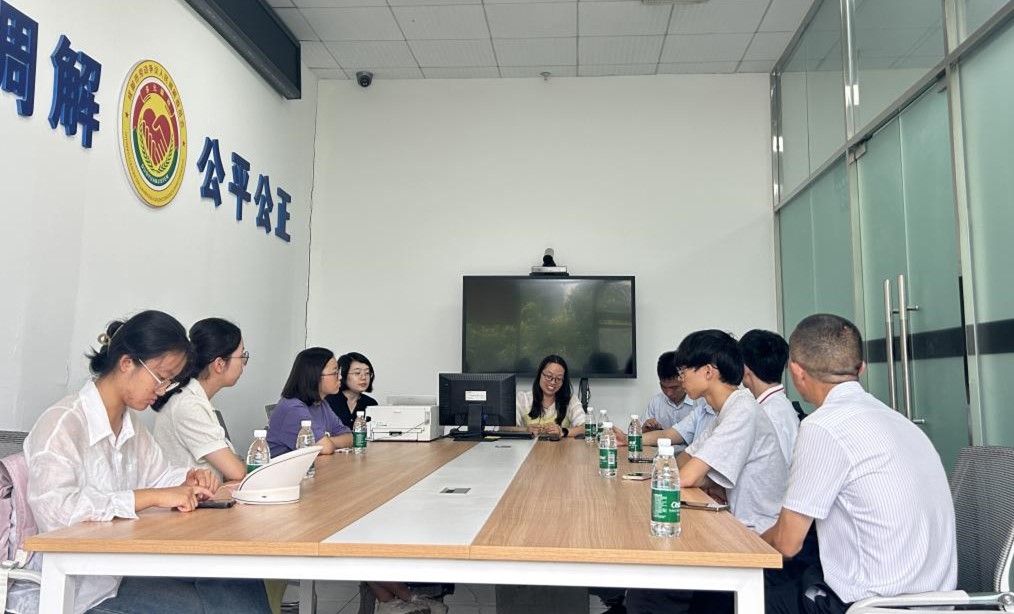 五、成都市雙流區(qū)人力資源和社會保障局實踐隊員前往成都雙流區(qū)人力資源與社會保障局,深入了解勞動人事爭議調(diào)解仲裁法律援助相關(guān)工作。實踐隊員通過旁聽庭審、參觀勞動糾紛一站式聯(lián)處中心,學(xué)習(xí)勞動監(jiān)察與仲裁實務(wù)操作,了解多元化解聯(lián)調(diào)機(jī)制。通過與當(dāng)?shù)馗刹可钊虢涣,就法律援助多元化參與主體的角色與作用、如何提高服務(wù)效率等問題展開深入探討,讓實踐隊員們更真實、全面地了解我國法律援助事業(yè)的基層發(fā)展?fàn)顩r,切身感受到勞動爭議法律援助中的痛點難點,學(xué)習(xí)精準(zhǔn)普法和幫扶經(jīng)驗,明晰解決群眾急難求盼問題的措施,進(jìn)一步提升了實踐隊開展法律援助與普法宣傳志愿服務(wù)的能力。