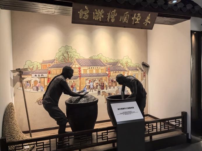 成員們聽取講解員的解說,詳細了解到鎮江香醋獨特的“固態分層發酵”工藝,在博物館內的展示區,看到了工藝流程的實物展示和互動演示,這與陳醋的釀造有著本質上的區別,因而導致香醋與陳醋在味道上有著相似卻不相同的口感。
