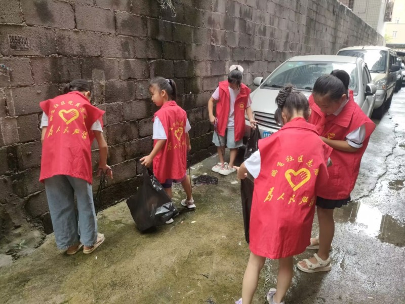 (圖為實踐團成員在鵬飛社區開展文明旅游宣傳)