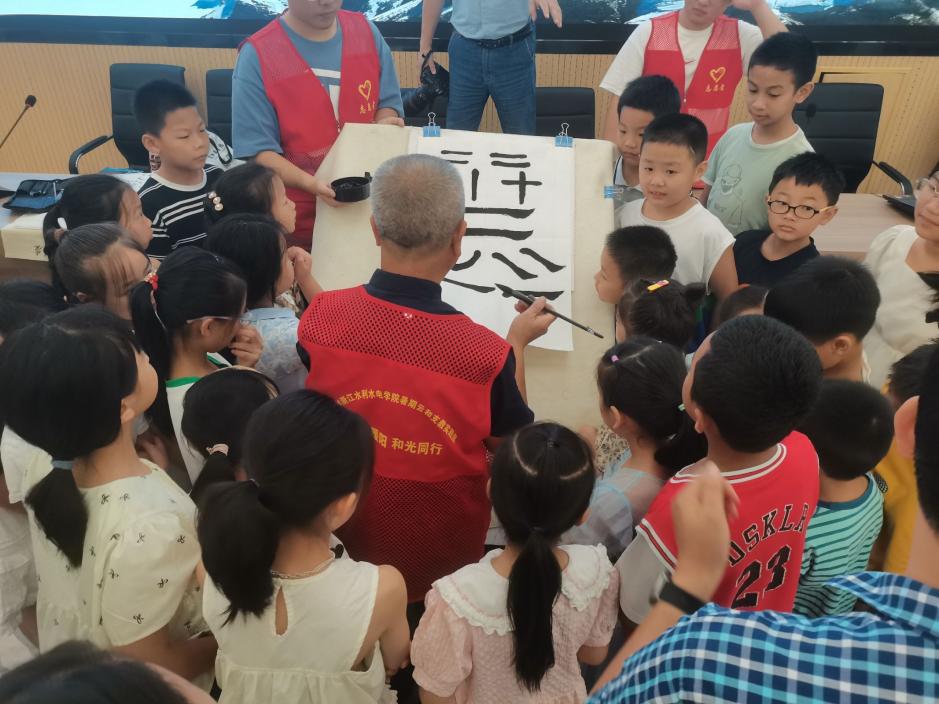 圖為2024年7月 大坪社區(qū) 小朋友們學(xué)習(xí)書法現(xiàn)場