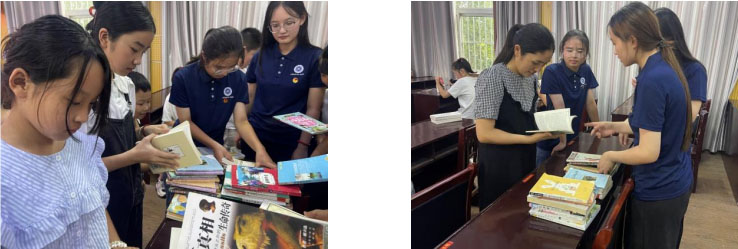 在此活動開展前,團隊成員聯合社區與身邊同學發起捐書活動,共募集《西游記》、《小牛頓科普館》等文學、科學類書籍153本,將社會的愛心與溫暖傳遞給每一位小朋友。同時,志愿者們根據孩子們的年齡和興趣進行分類推薦,讓孩子們進行挑選。相信在這些書籍的陪伴下,孩子們的前路更加光明,他們將帶著社會的關愛與期望,努力學習,成為有理想、有道德、有文化、有紀律的社會主義建設者和接班人。