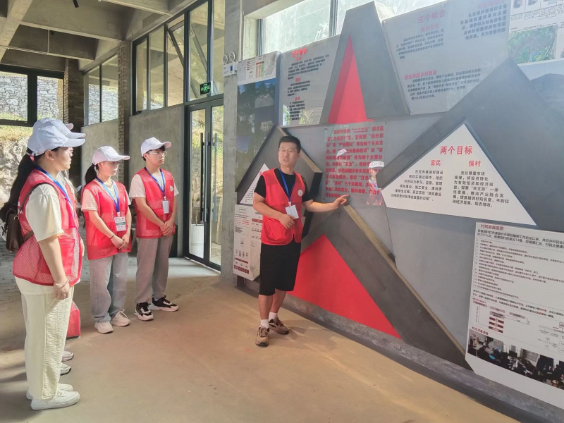 黔烽聚力志愿服務團成員參觀黨建文化館,穿越時空,與紅軍長征對話,感受歷史的厚重與激情。貓洞村的“五特”“五治”“五亮”“五榜”“五創”,如同珍珠串連,繪就鄉村振興的美麗畫卷,每一處都生機勃勃,活力四溢。