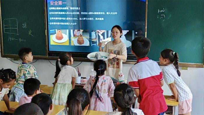 “火焰掌”、“火山噴發模擬”以及“火箭炮發射”等小實驗不僅是旨在增強科學素養的課堂,還是團隊的物理老師用絢爛的方式告訴大家,世界處處充滿精彩。