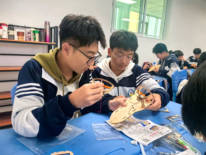 圖為學生團隊合作共同研究拼裝船模過程。張京 供圖