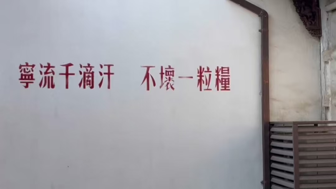 圖為館內(nèi)“寧流千滴汗 不壞一粒糧”標(biāo)語(yǔ) 史安琪 攝