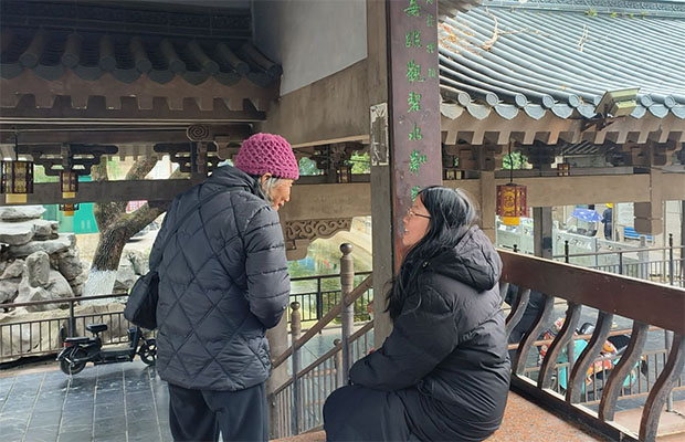 圖為團(tuán)隊(duì)成員采訪靈渠景區(qū)內(nèi)的社區(qū)居民