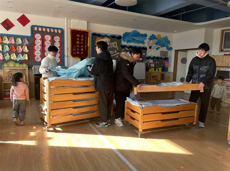 在陽光的映襯下,煥然一新的活動室顯得格外溫馨。實踐團隨即前往了孩子們的午休室為孩子們整理睡眠環境保證孩子們睡眠質量。