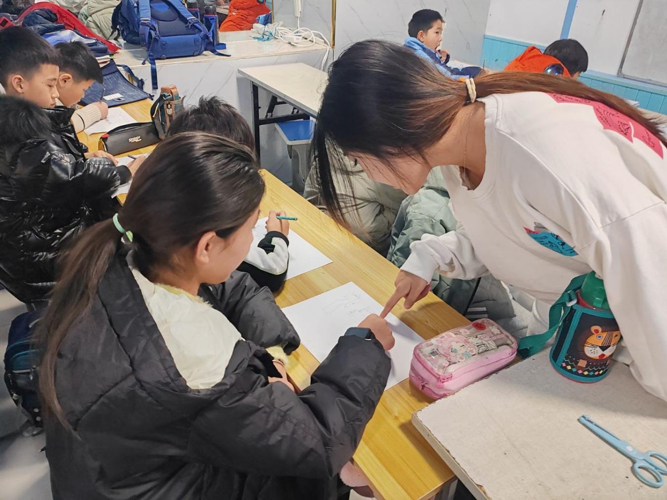 圖為實踐隊隊員指導小朋友作畫。吉然 供圖