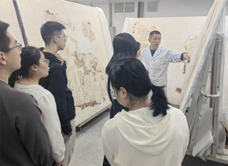 為了更好地傳承和發揚中國傳統壁畫藝術,深入了解古絲綢之路上壁畫藝術及歷史文化遺跡的重要價值,2025年1月8日上午,西北工業大學“絲路遺珠·物語青言”實踐隊在文化遺產研究院汪娟麗老師的帶領下,踏入陜西省歷史博物館,在壁畫修復中心,近距離感受壁畫修復的奇妙與艱辛,參觀壁畫珍寶館等多個博物館展廳,開啟了一場穿越千年的文化探索之旅。