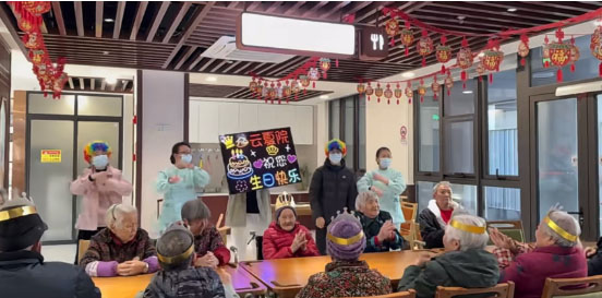 活動(dòng)當(dāng)天,室內(nèi)布置得非常溫馨,充滿了節(jié)日的氣氛。首先,我們?yōu)槊课贿^(guò)生日的老人戴上了精心準(zhǔn)備的生日帽。看到老人們戴上生日帽后,他們的臉上露出了燦爛的笑容,我們也感到非常高興。雖然大多數(shù)老人已經(jīng)年事已高,行動(dòng)不便,但他們依然感受到了濃濃的關(guān)愛(ài)。