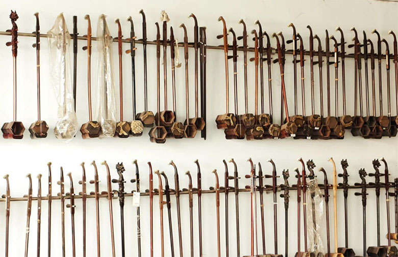 圖為樂器店陳列的二胡。楊穩穩 供圖