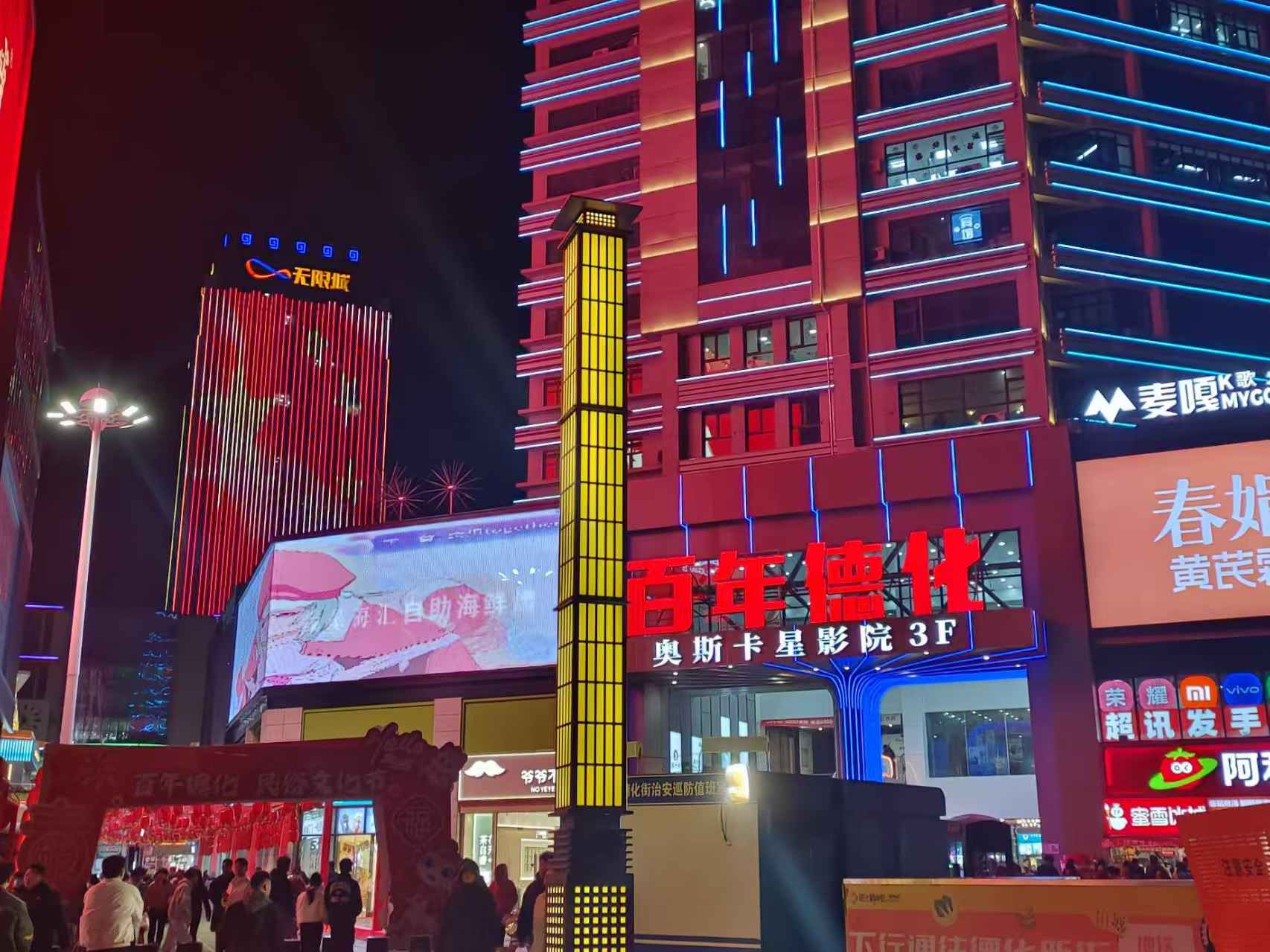 圖為夜晚的百年德化風情購物公園。鄭琳玥 攝