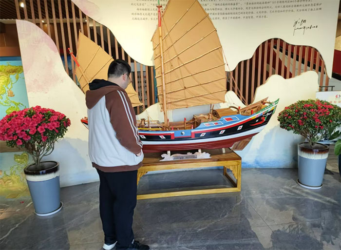 展覽館還通過多媒體展示、場景復(fù)原等現(xiàn)代手段,讓福建農(nóng)林大學交通與土木工程學院福建海洋文化“海韻閩風”宣傳實踐團隊更加直觀地感受泉州海洋信仰與海航文化的魅力。在多媒體展示區(qū),一段段精彩的視頻資料,生動地呈現(xiàn)了古代泉州港的繁華景象和航海者們的冒險歷程。而在場景復(fù)原區(qū),仿造的古代碼頭、商船,以及身著傳統(tǒng)服飾的“船員”和“商人”,讓人仿佛置身于古代的泉州港,親身感受到了當時的熱鬧與繁忙。