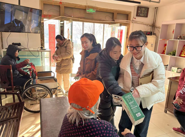 活動(dòng)當(dāng)天,實(shí)踐團(tuán)成員為老人們帶去了生活用品、營(yíng)養(yǎng)品等物資。在進(jìn)入養(yǎng)老院后,由養(yǎng)老院負(fù)責(zé)人帶領(lǐng)實(shí)踐團(tuán)成員為老人分發(fā)營(yíng)養(yǎng)物質(zhì)和生活用品。不僅如此,他們還通過(guò)陪伴老人聊天、為老人講解用電安全問(wèn)題等,與老人們建立了深厚的情感聯(lián)系。實(shí)踐團(tuán)成員還耐心傾聽(tīng)老人們講述過(guò)往的故事,有的則幫助老人解決生活中的小難題,一幕幕溫馨的畫(huà)面在養(yǎng)老院中不斷上演。