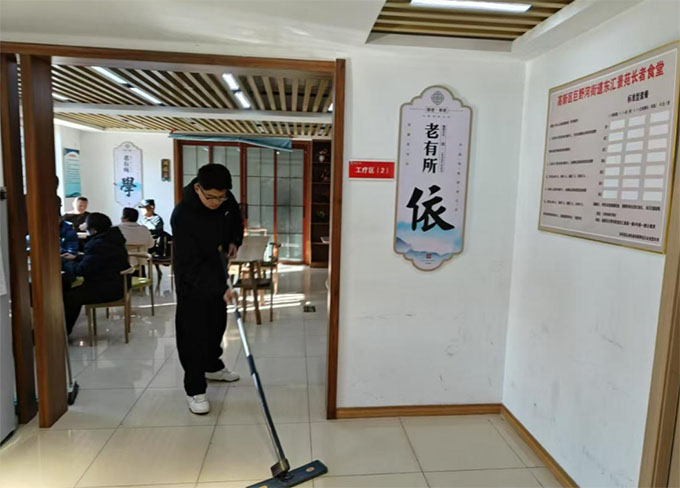 與此同時(shí),王猛正認(rèn)真打掃衛(wèi)生,不放過(guò)任何一個(gè)角落。他仔細(xì)清掃地面的灰塵,擦拭著公共區(qū)域的桌椅,讓養(yǎng)老服務(wù)中心的環(huán)境煥然一新。郭君郅則耐心地陪老人聊天,傾聽(tīng)他們過(guò)去的故事,時(shí)而點(diǎn)頭,時(shí)而微笑,老人臉上滿是被傾聽(tīng)的滿足。