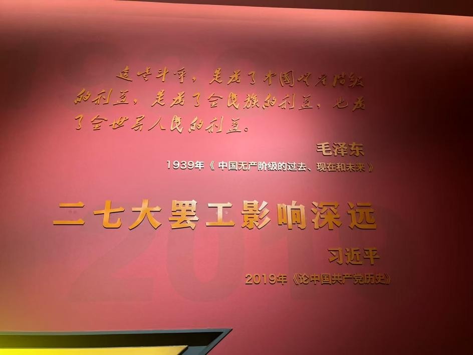 圖為毛主席和習主席對二七大罷工的評價。齊心悅 攝
