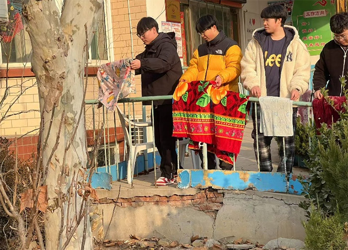 抵達養老院后,實踐團成員們便立刻忙碌起來。實踐團成員們首先將精心準備的新鮮水果、牛奶等增強老人體質的食物送到老人們手中,看到老人們臉上洋溢的笑容,成員們也倍感欣慰。隨后,實踐團成員們來到老人的房間,幫老人把厚重的被子搬到院子里晾曬。陽光透過被子,不僅帶走了潮氣,更帶來了溫暖。成員們一邊整理被子,一邊和老人嘮著家常,了解老人們的生活所需以及生活情況。