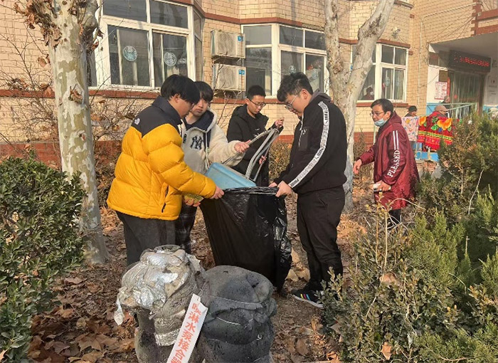 經過了下午與老人的交談實踐團成員們得知老人們并不喜歡樹葉凋零的環境,于是實踐團成員們拿起掃帚,清掃養老院的大院。他們認真地將地面的落葉、雜物清掃干凈,讓院子變得整潔又敞亮。在清掃過程中,成員們不怕臟、不怕累,一心只為給老人們營造一個舒適的生活環境。