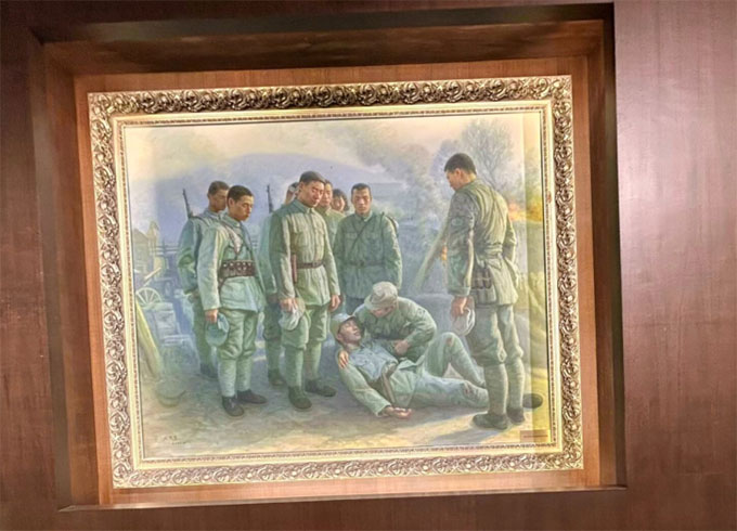 油畫中的場(chǎng)景栩栩如生,戰(zhàn)火紛飛、硝煙彌漫,戰(zhàn)士們沖鋒陷陣,仿佛能聽到震耳欲聾的槍炮聲和激昂的喊殺聲。雕塑則以凝固的藝術(shù)形式,展現(xiàn)了先輩們的英勇形象,有的緊握鋼槍,目光如炬;有的背負(fù)傷員,腳步堅(jiān)定;有的在地圖前謀劃戰(zhàn)略,神情專注。“黃沙百戰(zhàn)穿金甲,不破樓蘭終不還”,這些雕塑不僅是對(duì)先烈的緬懷,更是對(duì)那段歷史的生動(dòng)詮釋,讓人們深切感受到先輩們?cè)跉埧釕?zhàn)爭中不屈不撓、誓破敵寇的堅(jiān)定決心。每一尊雕塑都仿佛在訴說著他們?yōu)榱死硐胄拍,甘愿歷經(jīng)千難萬險(xiǎn),哪怕馬革裹尸也在所不惜的壯志豪情。